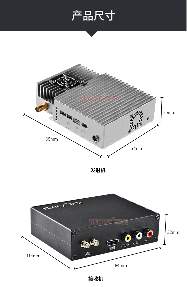 廣泛應用于軍事偵察、邊防巡邏、公安技偵、航拍、空中測繪、電力巡查、鐵路搶險、海事執法、城管執法、新聞密訪、衛生防疫等或突發事件應急指揮、無人車、無人船、特種機器人等領域。設備體積小可偽裝做密訪取證、空中作業圖傳、無人機無線圖像傳輸。