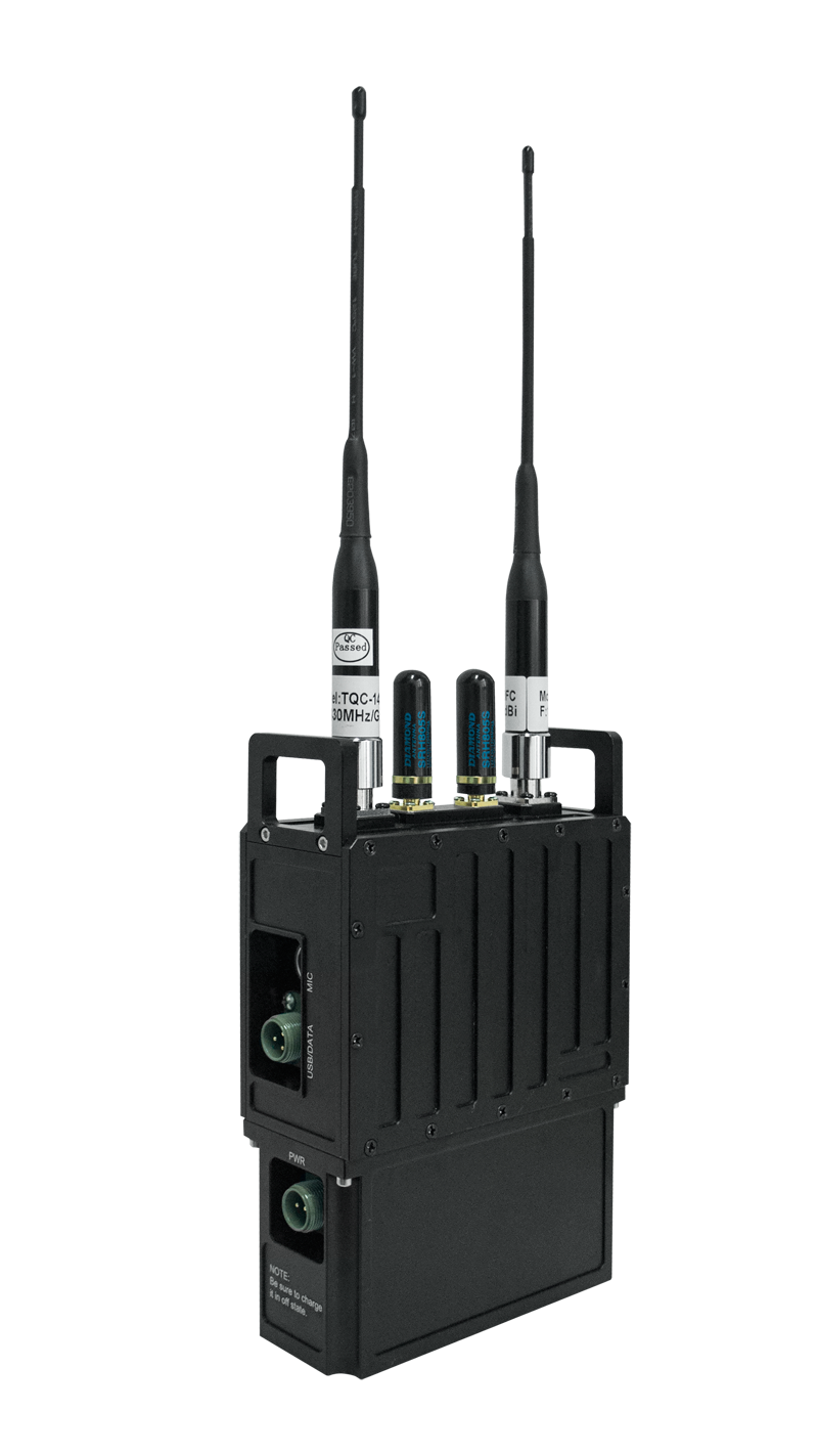 手持型寬帶無線自組網設備基于軟件無線電體系架構進行實現,采用自主研發的COFDM波形、高效信道編解碼和多跳自組網協議等技術,具備很強的對抗復雜信道環境能力,實現在復雜場景下完成單兵、車輛、無人機等機動點、固定點之間的無中心同頻自組網寬帶業務傳輸。設備體積小、功耗低、易于單兵手持攜帶。
