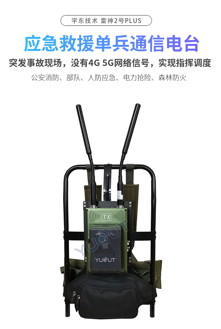 宇東技術(shù)雷神2號plus背負(fù)式高清無線圖傳電臺,是公司針對應(yīng)急救援指揮、公安、反恐作戰(zhàn)、消防救援、邊防執(zhí)勤、海警海關(guān)巡檢、部隊拉練演習(xí)、森林消防等,在突發(fā)重大事件,斷網(wǎng)斷電,通信中斷的情況下,現(xiàn)場工作人員通過宇東雷神系列單兵圖傳電臺,把現(xiàn)場采集的數(shù)據(jù)實時無線傳輸?shù)街笓]車/臨時指揮部大屏幕,讓指揮部領(lǐng)導(dǎo)對現(xiàn)場情況一目了然,節(jié)省了到達(dá)現(xiàn)場的時間,可快速做緊急指揮調(diào)度,最大限度的減少突發(fā)事件帶來的各種損失,宇東雷神2號plus單兵電臺支持雙向語音對講系統(tǒng),現(xiàn)場工作人員可以和指揮部通話,接受領(lǐng)導(dǎo)發(fā)送的各種指令。