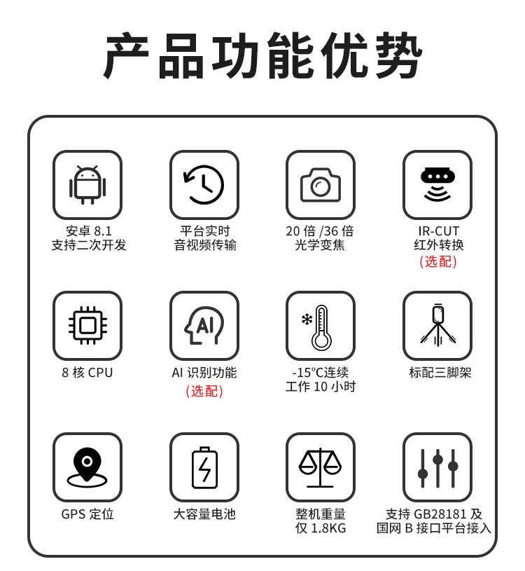 * Android 8.1 8核,20倍/36倍光學變焦